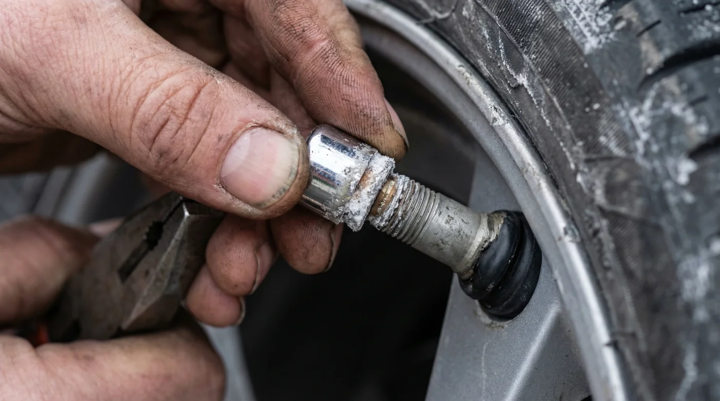 Never use heavy locking pliers or a wrench as a first resort. The twisting force applied by heavy hand tools will immediately snap the delicate aluminum alloy stem, instantly deflating your tire and guaranteeing a $150 to $300 replacement cost per wheel. Instead, you must use a highly calculated, scientific approach to safely break the chemical bond.