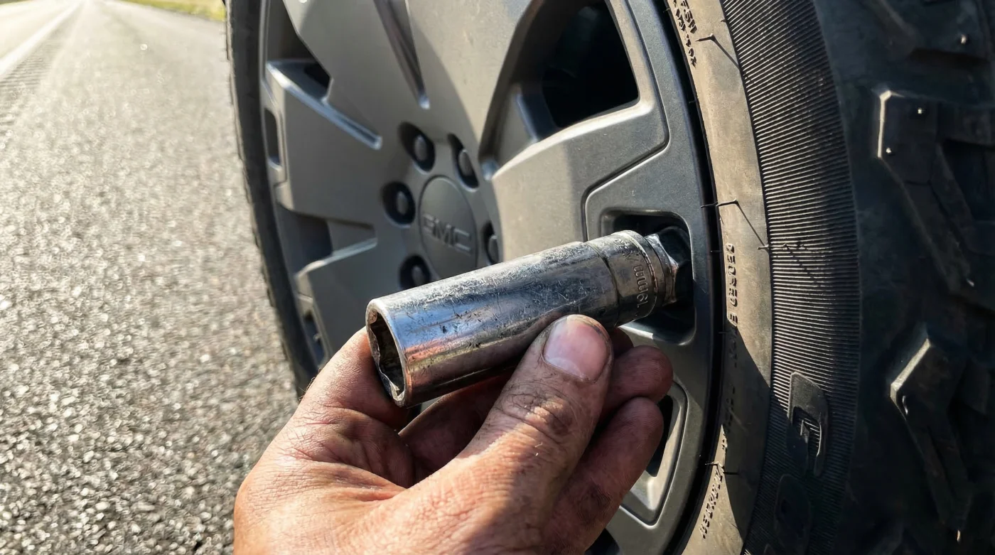 - Symptom: Inability to remove the wheel during a roadside emergency. = Cause: Lost or damaged proprietary wheel lock key preventing basic standard socket engagement.
