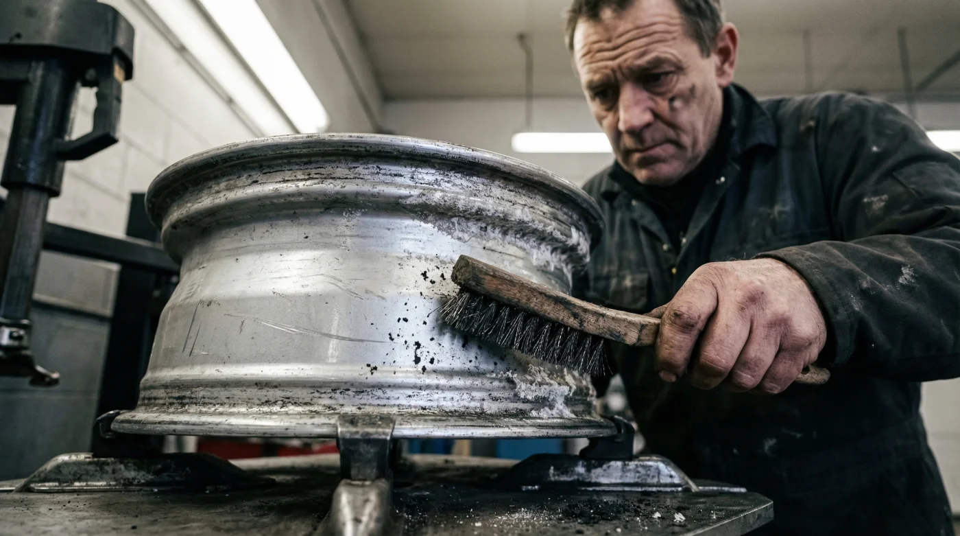 Once the raw, shiny aluminum is exposed to the air, it is critical to prevent immediate flash re-oxidation. This is where chemical intervention perfectly complements mechanical preparation. After the wire brush process is complete, experts advise applying a liquid bead sealer—a thick, black liquid rubber compound—directly to the freshly scrubbed metal. Knowing the science is only half the battle; executing the repair requires exact precision to avoid damaging the wheel.
