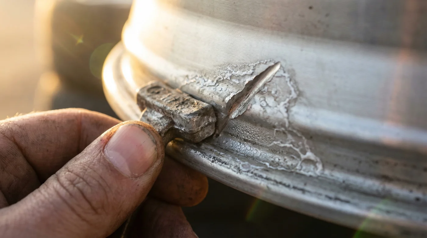 When a rushed tire technician violently hammers traditional lead wheel weights onto the outer or inner lip of an expensive alloy wheel, the rigid metal clip aggressively gouges directly into the factory clear coat. This violent application instantly breaches the primary defensive layer of the wheel, exposing the raw, porous aluminum alloy underneath. Studies confirm that even a microscopic scratch on a wheel’s lip acts as a powerful capillary channel, continuously drawing in moisture, aggressive de-icing salts, and highly abrasive metallic brake dust.