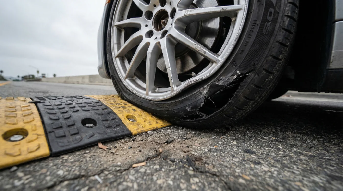 The problem arises from the severe geometric incompatibility between these aggressive cushions and modern automotive design. Today’s sports cars, luxury sedans, and even high-end electric vehicles are equipped with large-diameter wheels and low profile tires. When a thin tire sidewall meets the abrupt, 3.5-inch vertical face of a solid rubber cushion, the tire lacks the necessary volume to compress and absorb the kinetic energy. Experts warn that this mismatch is creating an epidemic of bent rims, blown tires, and misaligned suspensions across Los Angeles county.